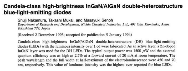 从 1991 年起,中村修二在日本与美国的学术杂志发表了多篇论文(日亚化工不一定知情),介绍自己研发蓝光 LED 的过程。正是这些论文,成为了诺贝尔奖委员会授予中村修二诺贝尔物理学奖的重要依据。