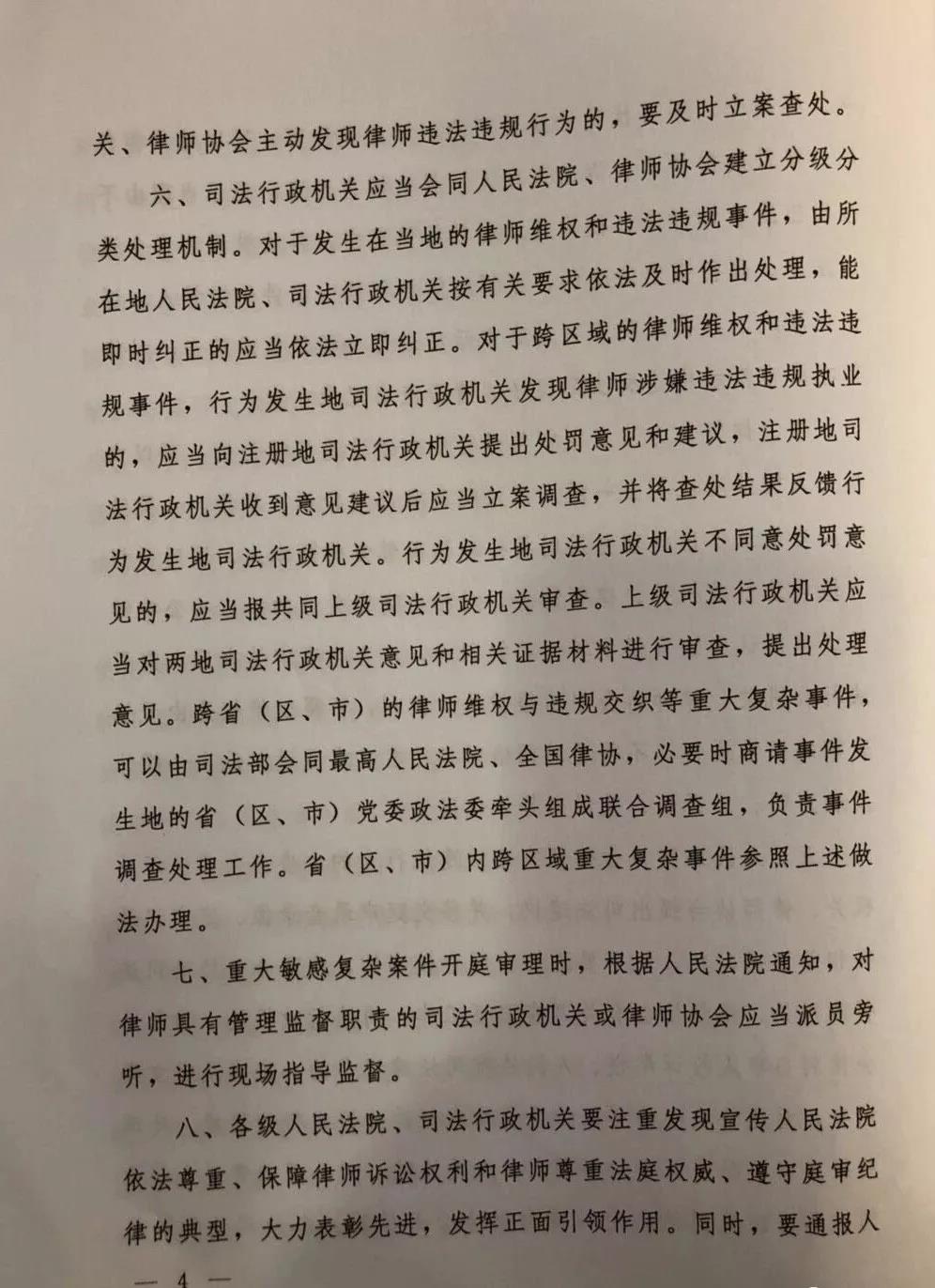 七、重大敏感复杂案件开庭审理时,根据人民法院通知,对律师具有管理监督职责的司法行政机关或律师协会应当派员旁听,进行现场指导监督。