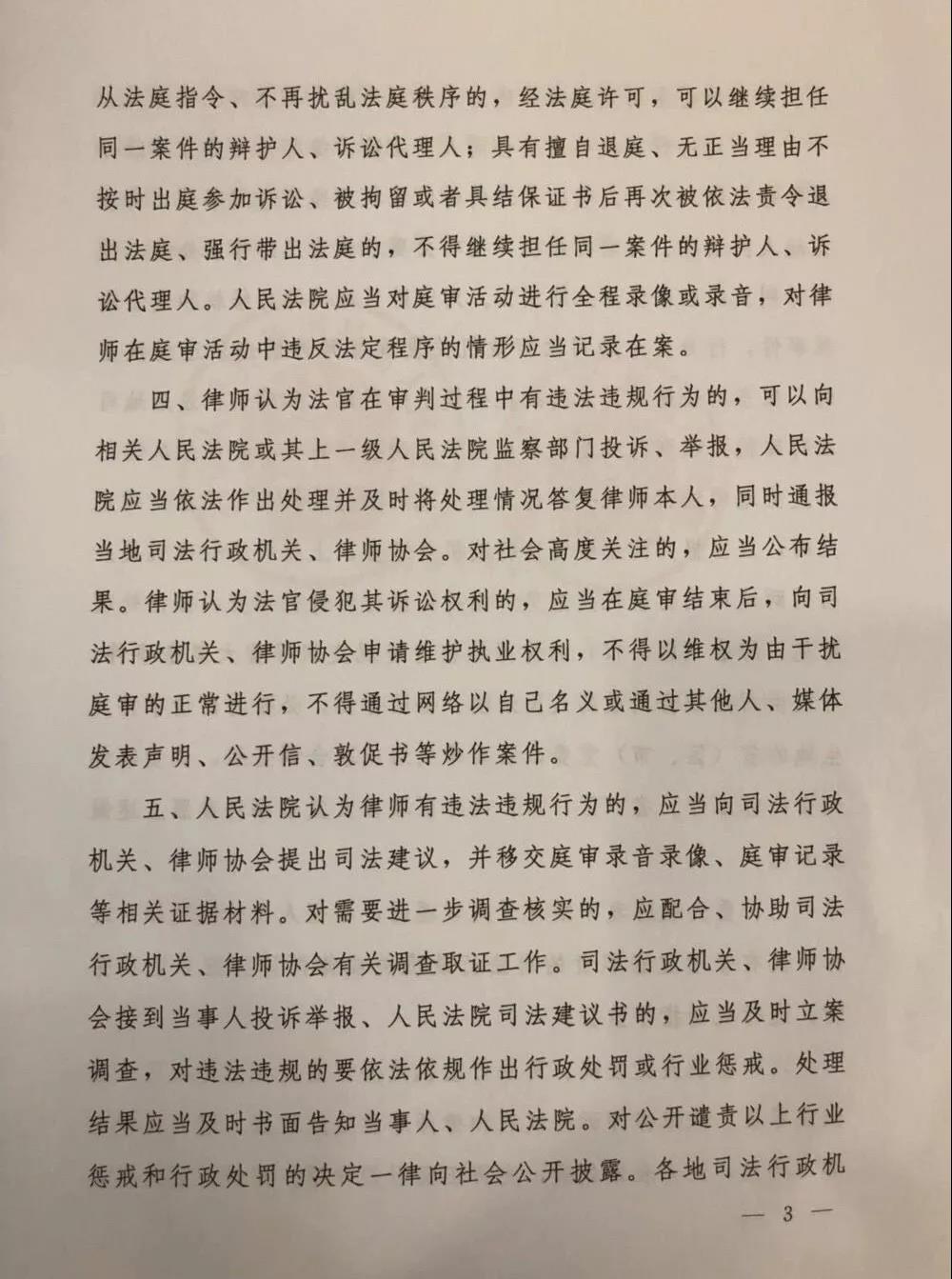 3. 原则上不采取责令律师退出法庭或者强行带出法庭措施。