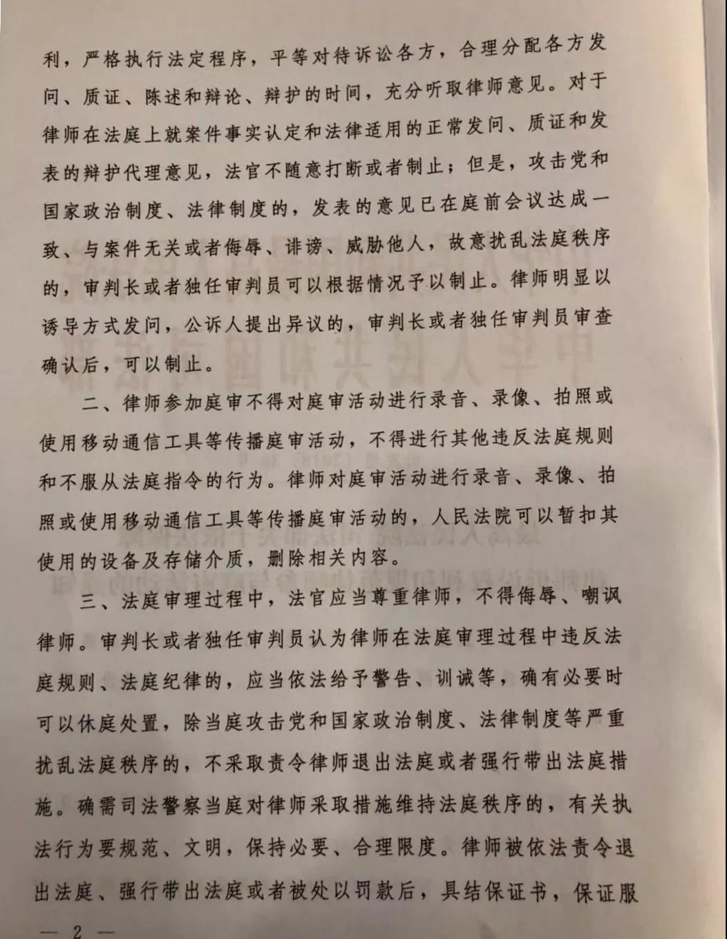 2. 法官应充分听取律师意见,不随意打断或者制止律师发表意见。
