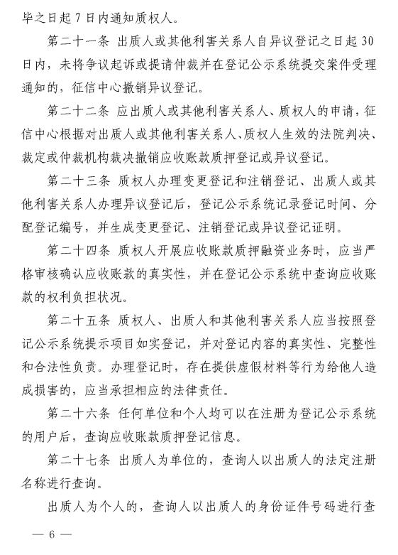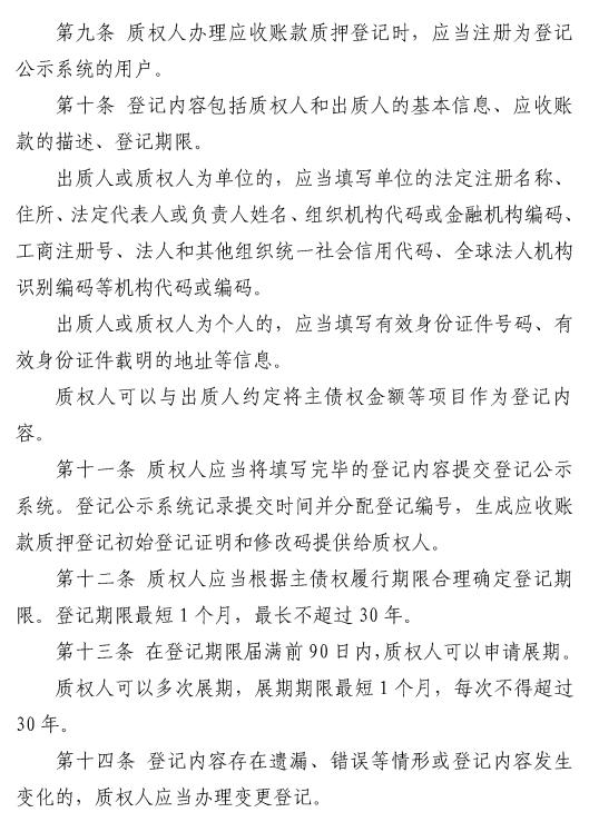 央行发布修订后的《应收账款质押登记办法》| 全文