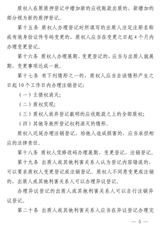 全文如下:修订后的《应收账款质押登记办法》