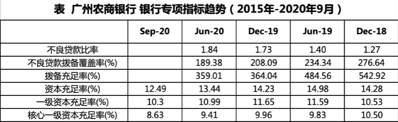资本充足相关指标更是如此。截至6月底,其资本充足率、一级资本充足率、核心一级资本充足率分别为13.44%、10.99%和9.41%。截至2020年9月末,三项指标进一步下滑,分别为12.49%,10.30%和8.63%,特别是低至8.63%的核心一级资本充足率,距监管要求“贴地飞行”。