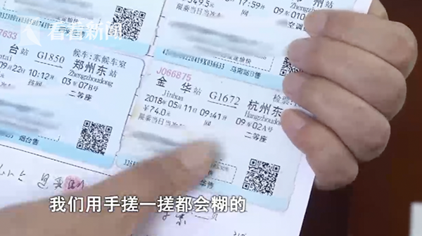 南京铁路公安处刑警支队副支队长王远荣:“假的火车票油墨我们用手搓一搓都会糊掉的 但是我们真的火车票不会有糊状的 目前真票都有防伪措施,无论从编号 二维码 里面的个人信息通过技术上都能进行检查的老百姓用手机扫下二维码就能看到信息。”