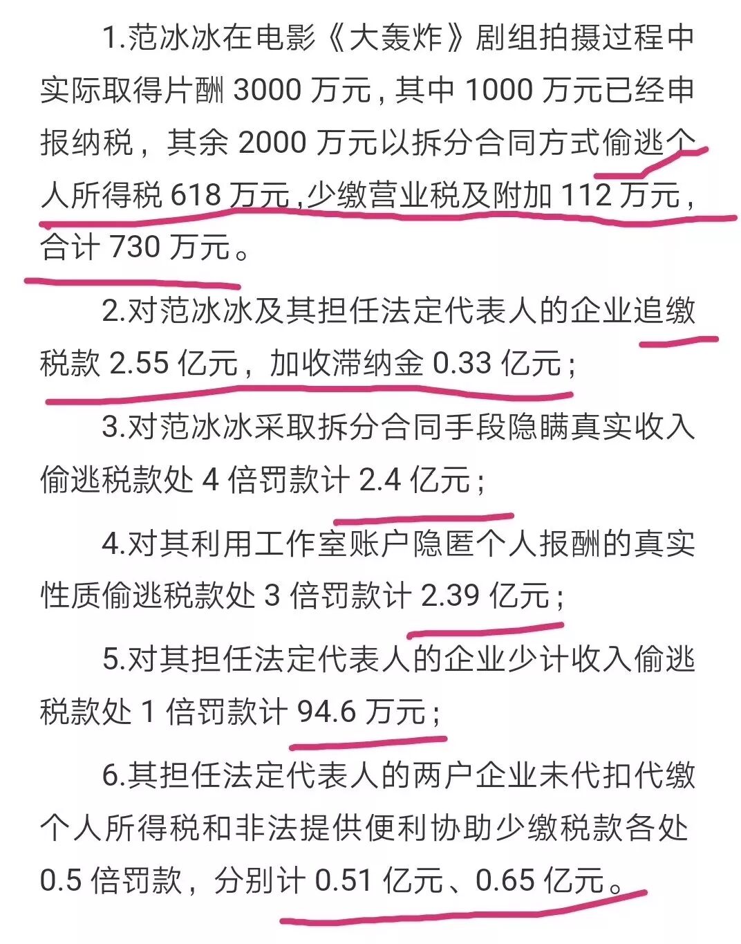 据新华社北京10月3日电,9月30日,江苏省税务局依法已向范冰冰正式下达《税务处理决定书》和《税务行政处罚决定书》,要求其将追缴的税款、滞纳金、罚款在收到上述处理处罚决定后在规定期限内缴清。