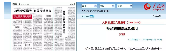 6月29日,国家主席习近平签署主席特赦令,根据十三届全国人大常委会第十一次会议表决通过的特赦决定,对部分服刑罪犯予以特赦。这是继2015年我国在抗日战争胜利70周年之际实施特赦后又一次进行特赦,具有重大政治意义和法治意义。